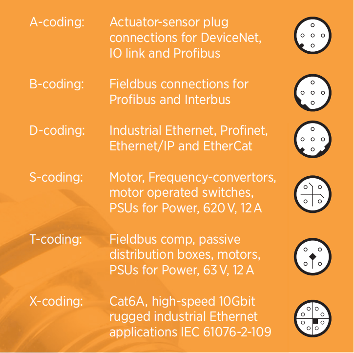 M12 anti-insert error coding: A / B / D / S / T / X / Y