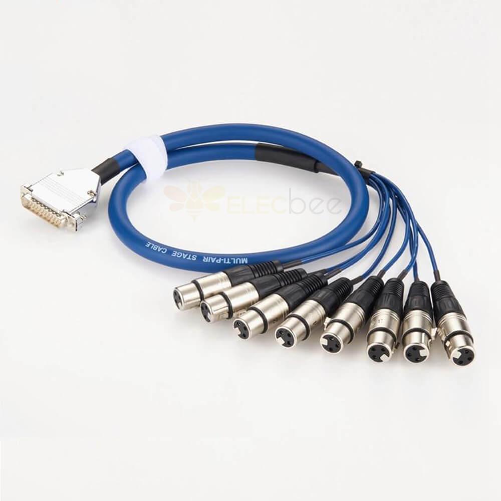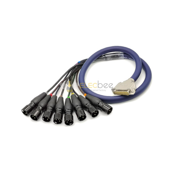 The star feature of this cable is its design. At one end, you have a single DB25 (D-sub 25 pin) male connector, and on the other, you're presented with 8 XLR female connectors. Now, let's break this down: