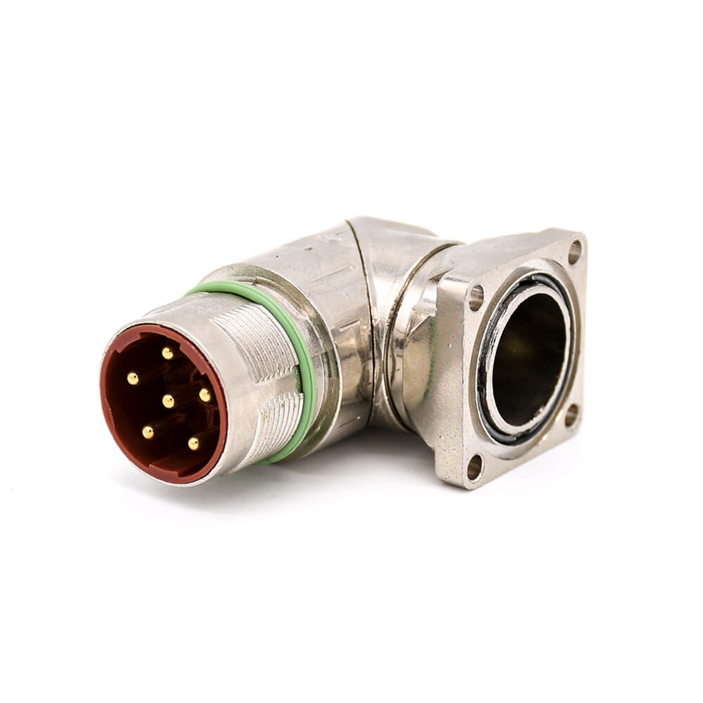 M40 male socket 6-pin right-angle waterproof 4-hole flange industrial belt shielded connector has excellent shielding performance, high-quality components and simple design, providing maximum EMI/RFI shielding capability and reducing assembly preparation time.