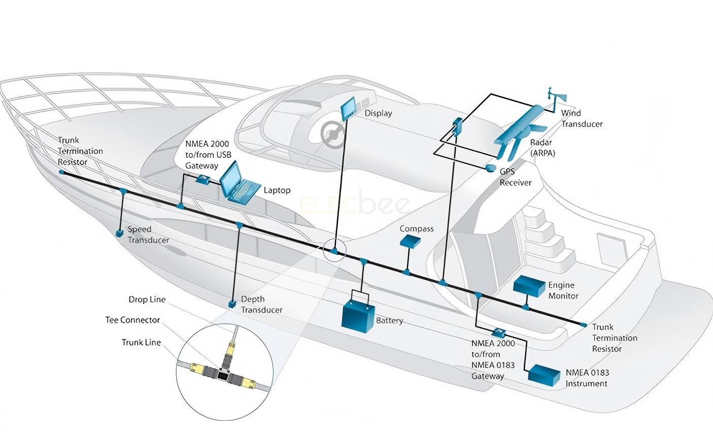 NMEA 2000 (National Marine Electronics Association 2000) is a communication standard for marine electronic devices based on the CAN bus technology used in the automotive industry. Its predecessor, NMEA 0183, has been in use for decades, but as marine electronic devices have become increasingly complex, the point-to-point, one-way communication mode of NMEA 0183 has proven inadequate. NMEA 2000, on the other hand, uses a bus-based network architecture to enable multi-device, multi-directional communication, allowing each device to simultaneously access data from other devices on the network.