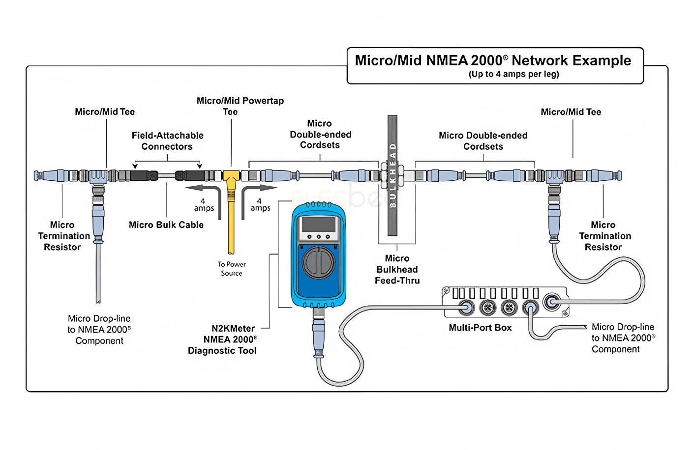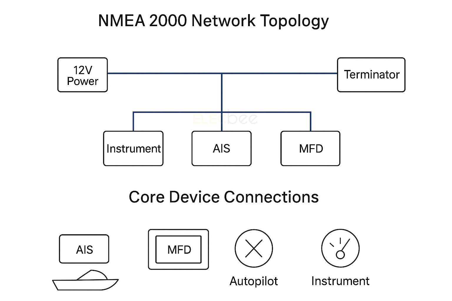 1.4. Power Supply: NMEA 2000 provides limited power, allowing low-power devices such as GPS antennas or small displays to be directly powered. However, high-power devices like AIS or chartplotters typically require independent power sources.