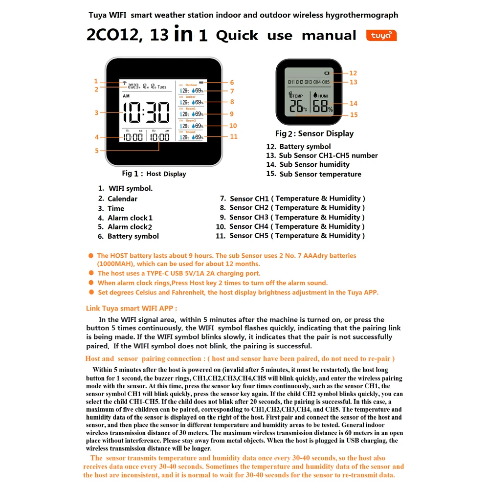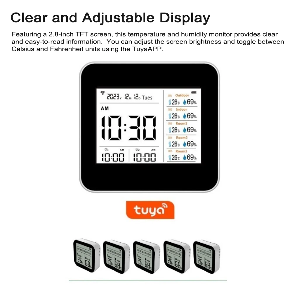 13-in-1 Multi-Function Monitoring - Track 5 sets of real-time temperature and humidity data while accessing integrated time, calendar, and alarm clock features—all in one compact device for comprehensive environmental oversight.
