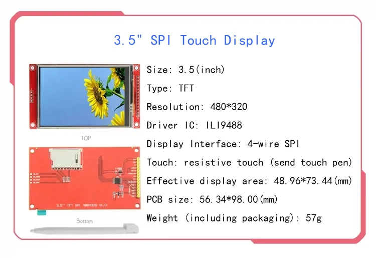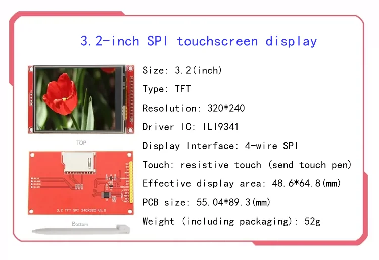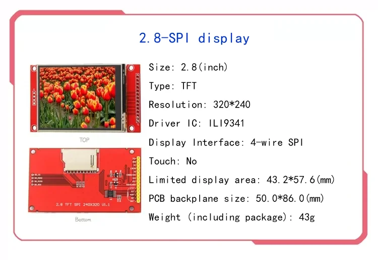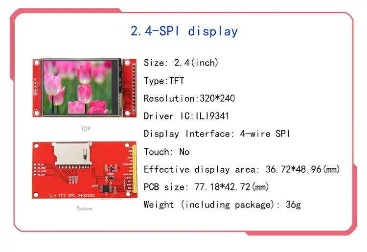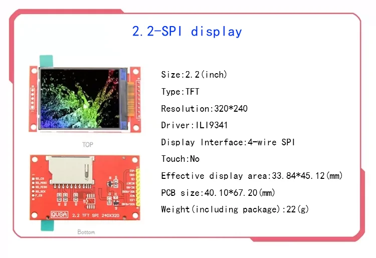 • High-Resolution TFT Panel: Features a TFT panel spi tft display, ensuring vibrant and clear visuals for your projects.