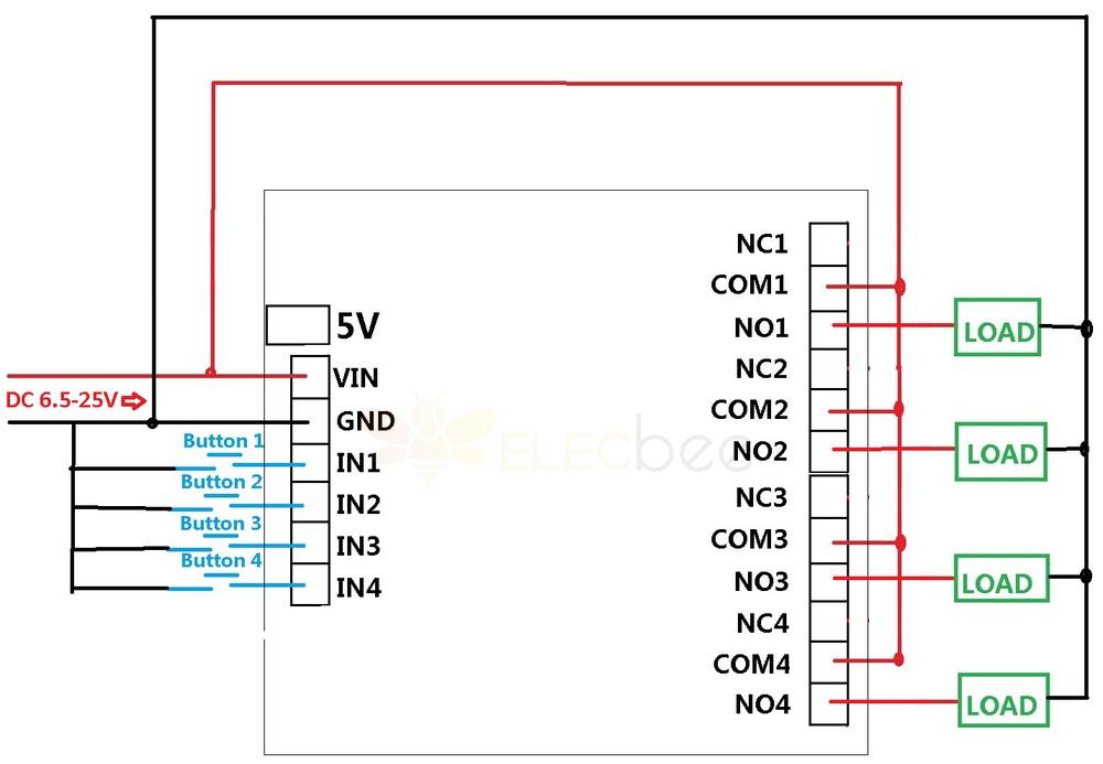 1 DC 6-25V control circuit,Wiring diagram below. "LOAD" may be LED lights, fans, motors and