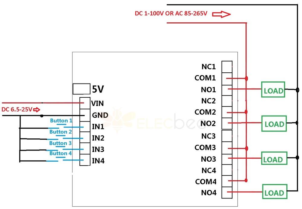 3 DC 1-100V OR AC 85-265V control circuit,Wiring diagram below. "LOAD" may be LED lights, fans, motors and other DC AC equipment