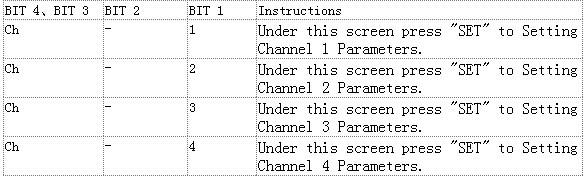 2.Press "SET" button to enter "channel select" interface. In the "channel select" screen, then press "++"/"-" button to select channel to operate (relay). Press "OK" button will exit "channel select" screen, and save the current parameters. Press "SET" button into "parameter settings" interface.