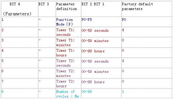 The following Function Modes can be set to cycle mode operation.You can set Number of cycles (Nx 1~99 times,00 is always cycle, the default is 01 not cycle).