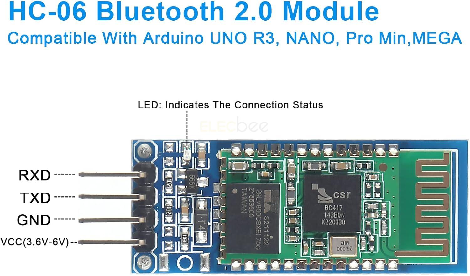 The core module HC-06 main modules, leads the interface includes VCC, GND, TXD, RXD, KEY pin high trigger to clear the pairing information re search
