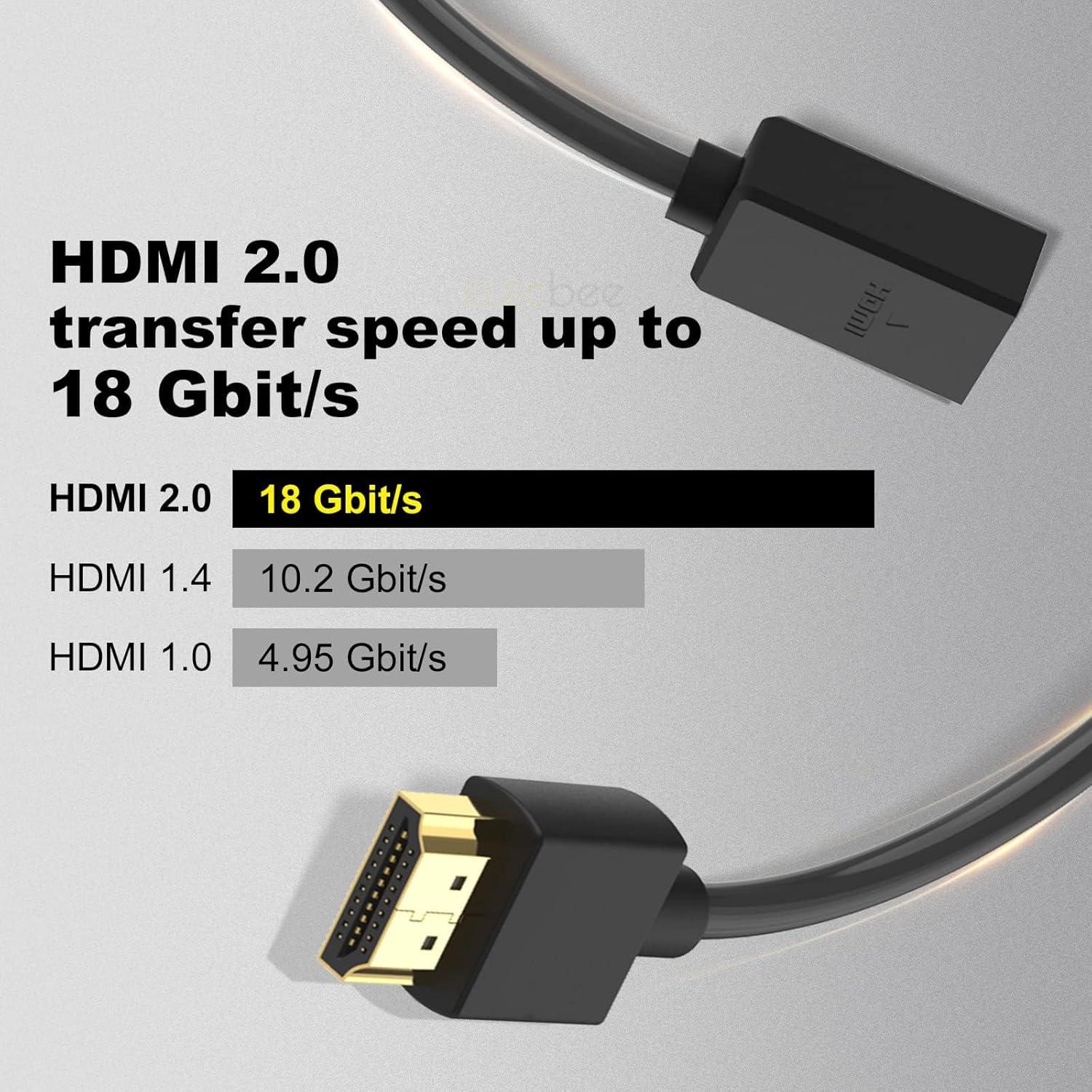 Elecbee HDMI Male to Female Extension Cable 1M | Short HDMI Extender, 4K 3D Support, Compatible with Chromecast/Roku/HDTV/PC