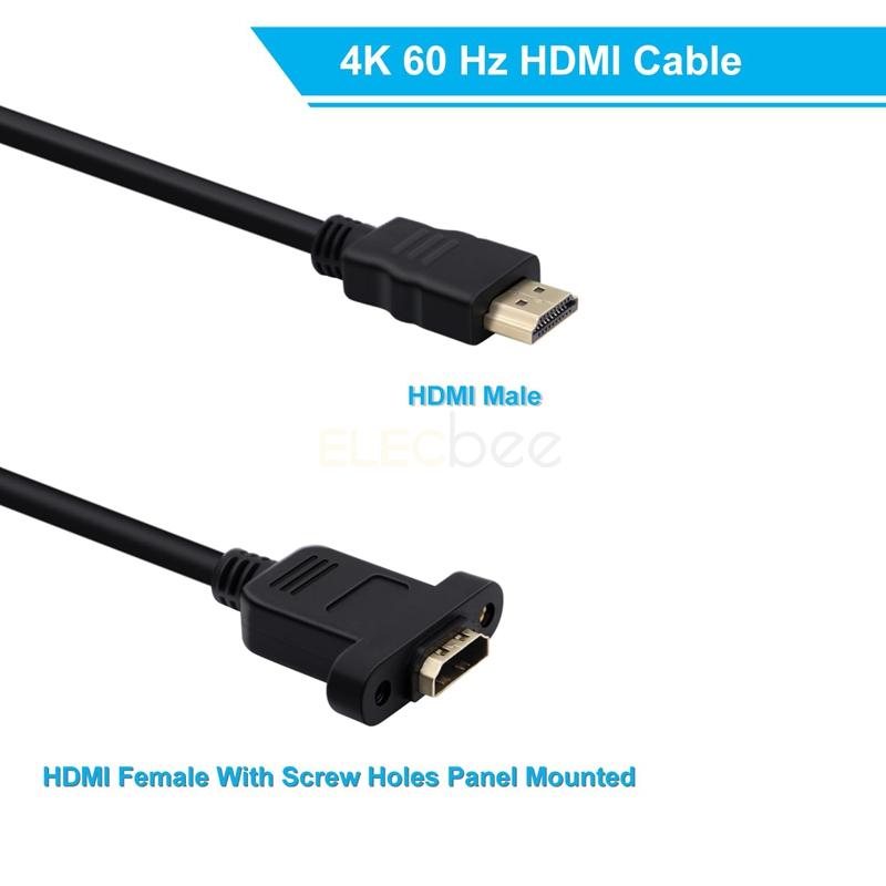 Elecbee Panel Mount HDMI Male to Female Extension Cable 4K Short Extender with Screw Holes 0.3M for Blu-ray Players, HDTV, Xbox360