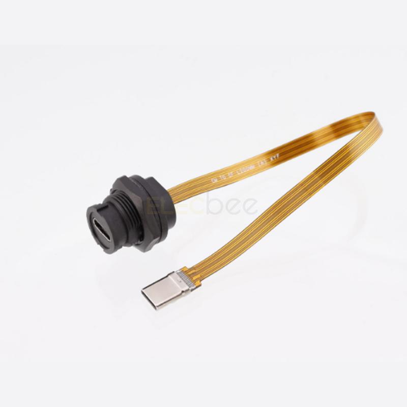 Elecbee USB Type C Female Panel Mount Receptacle to Male with 20cm FPC Cable IP67/IP68 Waterproof