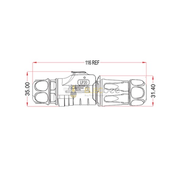 典型: LP-20 シリーズ電源ケーブル コネクタ オス