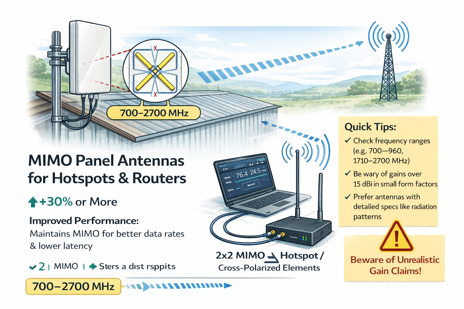Şüphe duyduğunuzda, doğru bir şekilde hedeflenen iyi tasarlanmış bir 8-11 dBi MIMO paneli, her seferinde bir “28 dBi” no-nameni yenecektir.