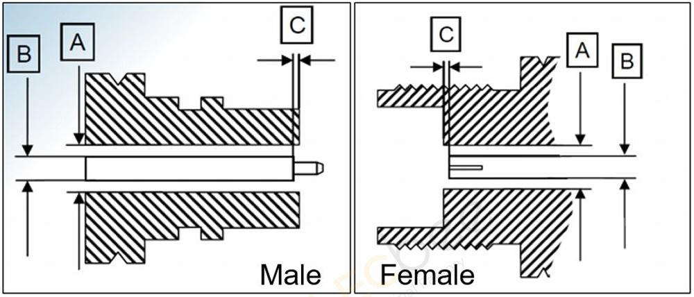 The outer diameter of the center conductor (combined with the inner diameter of the outer conductor, the impedance of the joint can be determined)