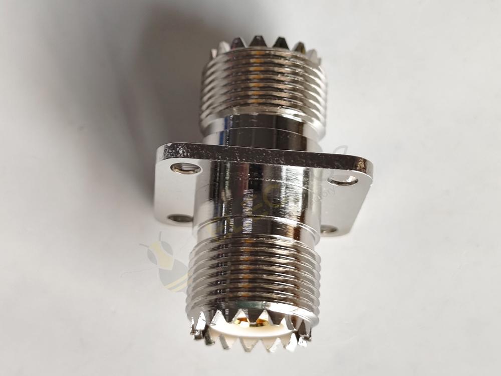 UHF connectors, both the PL259 and SO239 mating sections work well, provided that good quality versions are used and the frequencies of operation are kept below about 500 MHz for the highest quality versions and much below this for the inferior types.