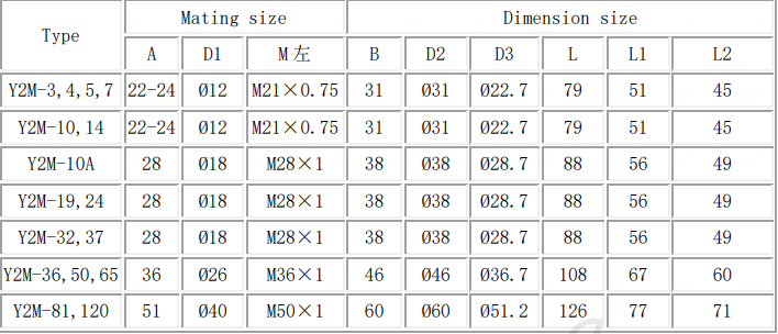 Y2M series circular connectors are used extensively in line connections between electrical equipment,various instruments and meters.These connectors have the features of small volume,light weight,convenient application,high durability of plugging and unplugging,good sealing performance,resistance against corrosion,high conductivity and high dielectric strength.It’s the ideal product of a new generation to replace the old “P” series connectors.