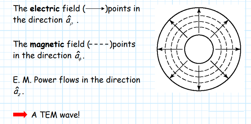 The figure above is a schematic diagram of a coaxial line, which consists of an inner conductor and an outer conductor. Because the inner conductor and the outer conductor are coaxial, it is called a coaxial line. The main mode of coaxial transmission is the TEM mode. In addition to the frequency doubling of the TEM mode, the higher-order modes also have TE and TM modes caused by the cavity. The coaxial lines we use are all working in TEM mode, and the field distribution is shown in the following figure: the electric field is from the outer surface of the inner conductor to the inner surface of the outer conductor, and the magnetic field surrounds the inner conductor and is periodically distributed in the length direction.