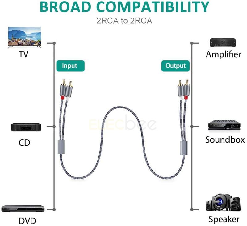 Elecbee 2rca male to 2rca male setero cables ، cable RCA Stereo cable for Home Theater ، HDTV ، upplifiers ، hi-fi systems ، audio car ، spealers 1m-5m