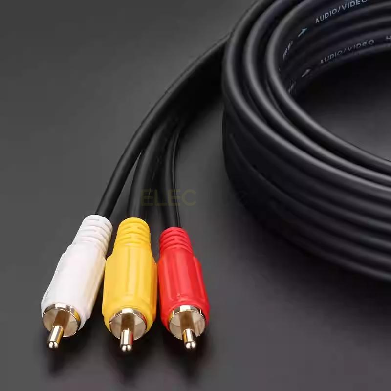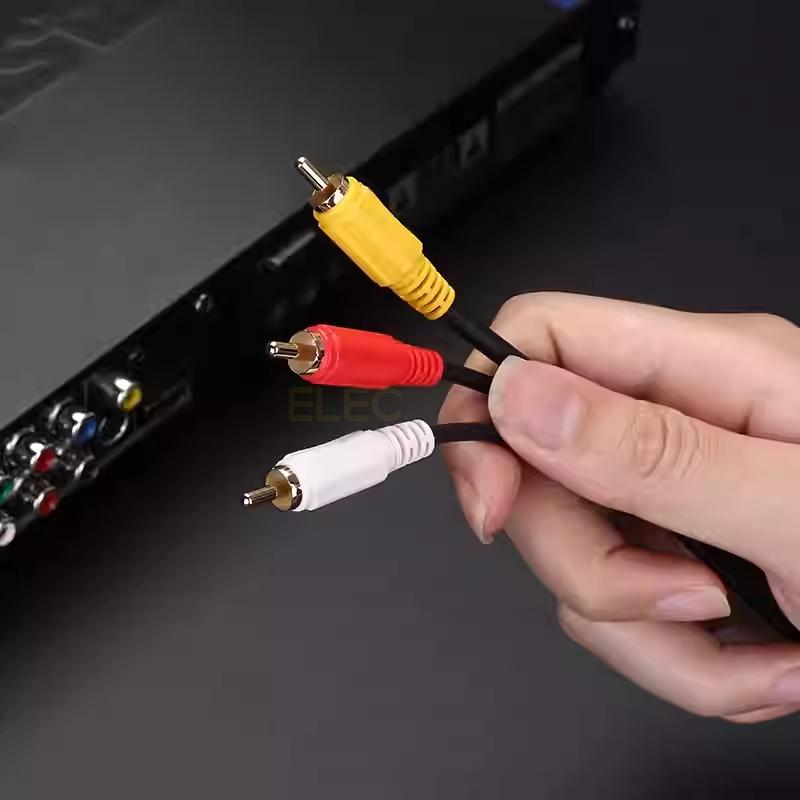 Elecbee 3RCA Audio Audio Video 24K Gold Plated Connecting Audio Video Components AV mal