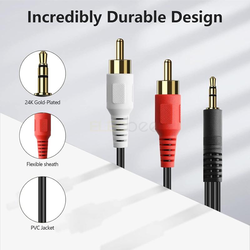 Elecbee 3.5mm Stereo Male to 2rca ذكر (يمين ويسار) كابل الصوت RCA