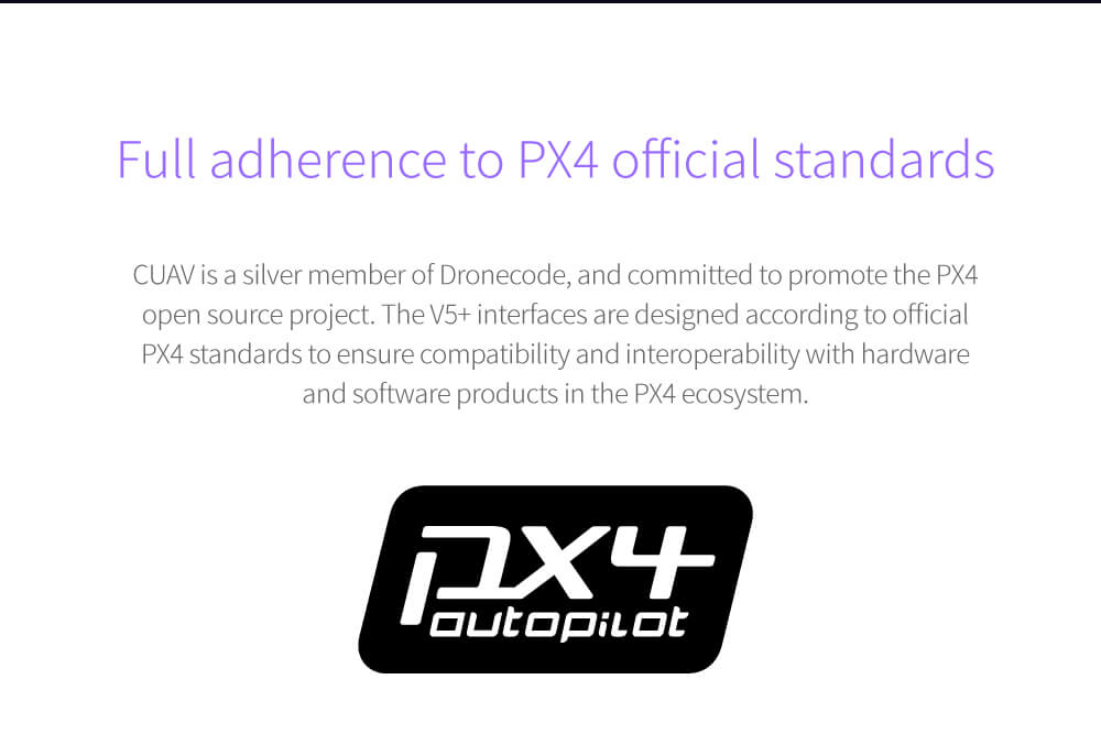 V5 + ® هو طيار آلي متقدم تم تصنيعه بواسطة CUAV®. تعتمد اللوحة على معيار تصميم Pixhawk FMUv5 ، وتستخدم الواجهة الخارجية pinouts القياسي Pixhawk ، ويسمح التصميم المعياري للمستخدمين بتخصيص لوحة الناقل الخاصة بهم. الطيار الآلي متوافق مع كل من البرامج الثابتة PX4 و ArduPilot. V5 + مثالي للبحث الأكاديمي وتكامل الأنظمة التجارية.