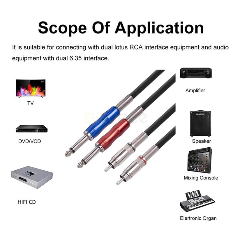 Elecbee Dual RCA Male إلى Dual 6.35mm Male Mixer Audio Cable 1M - مثالي لإعدادات الصوت الاحترافية ، مثل مشغلات CD/DVD ، والخلاطات ، ومكبرات الصوت