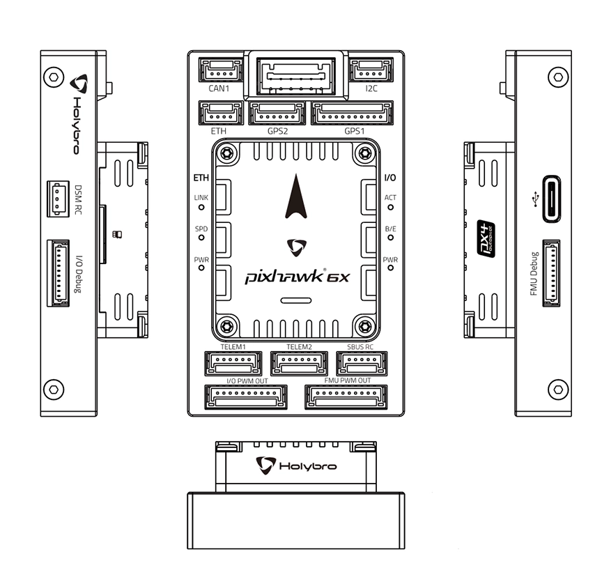 إن Holybro Pixhawk 5X / 6X Mini Baseboard عبارة عن لوحة أساسية صغيرة لوحدة التحكم في الطيران Pixhawk 5X / 6X! يعد Pixhawk 6X مثاليًا للمطورين في مختبرات أبحاث الشركات والشركات الناشئة والأكاديميين (الباحثين والأساتذة والطلاب) والتطبيقات التجارية. تقدم Holybro Pixhawk Baseboard و Pixhawk Mini-Baseboard ، ولكل منهما عوامل شكل وواجهات مختلفة. يشتمل المعيار المفتوح FMUv6X على وحدات IMU عالية الأداء ومنخفضة الضوضاء على متن الطائرة ، ومصممة لتحقيق استقرار أفضل. ثلاثي IMU مكرر ومقاييس زائدة مزدوجة في حافلات منفصلة. عندما يكتشف الطيار الآلي PX4 عطلًا في جهاز الاستشعار ، يتحول النظام بسلاسة إلى نظام آخر للحفاظ على موثوقية التحكم في الطيران. يعمل LDO المستقل على تشغيل كل مستشعر مع تحكم مستقل في الطاقة. نظام عزل الاهتزاز لتصفية الاهتزازات عالية التردد وتقليل الضوضاء لضمان قراءات دقيقة ، مما يسمح للمركبات بالوصول إلى أداء طيران إجمالي أفضل. يحتوي ناقل المستشعر الخارجي (SPI5) على سطرين محددين للرقاقة وإشارات جاهزة للبيانات لأجهزة استشعار إضافية وحمولة مع واجهة SPI ، ومع Microchip Ethernet PHY ، أصبح الاتصال عالي السرعة مع أجهزة الكمبيوتر الخاصة بالمهمة عبر إيثرنت ممكنًا الآن.
