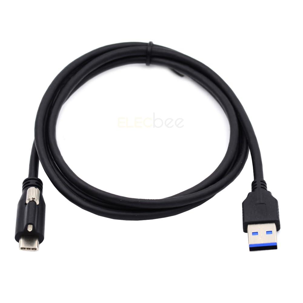 كابل بيانات قفل USB 3.0 إلى USB 3.1 من النوع C من Elecbee مع برغي تثبيت على اللوحة لكاميرات رؤية الماكينات الصناعية - 1 متر