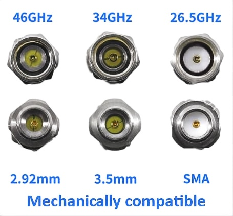 SMA and 3.5mm connectors are widely used RF coaxial interfaces designed for high-frequency applications. The SMA connector is a 50-ohm interface originally rated to 18 GHz, while some high-performance versions can operate up to 24–26.5 GHz. The 3.5mm connector extends this frequency range and offers improved mechanical precision and signal repeatability, while the 2.92mm connector supports even higher frequencies for ultra-high-performance applications.