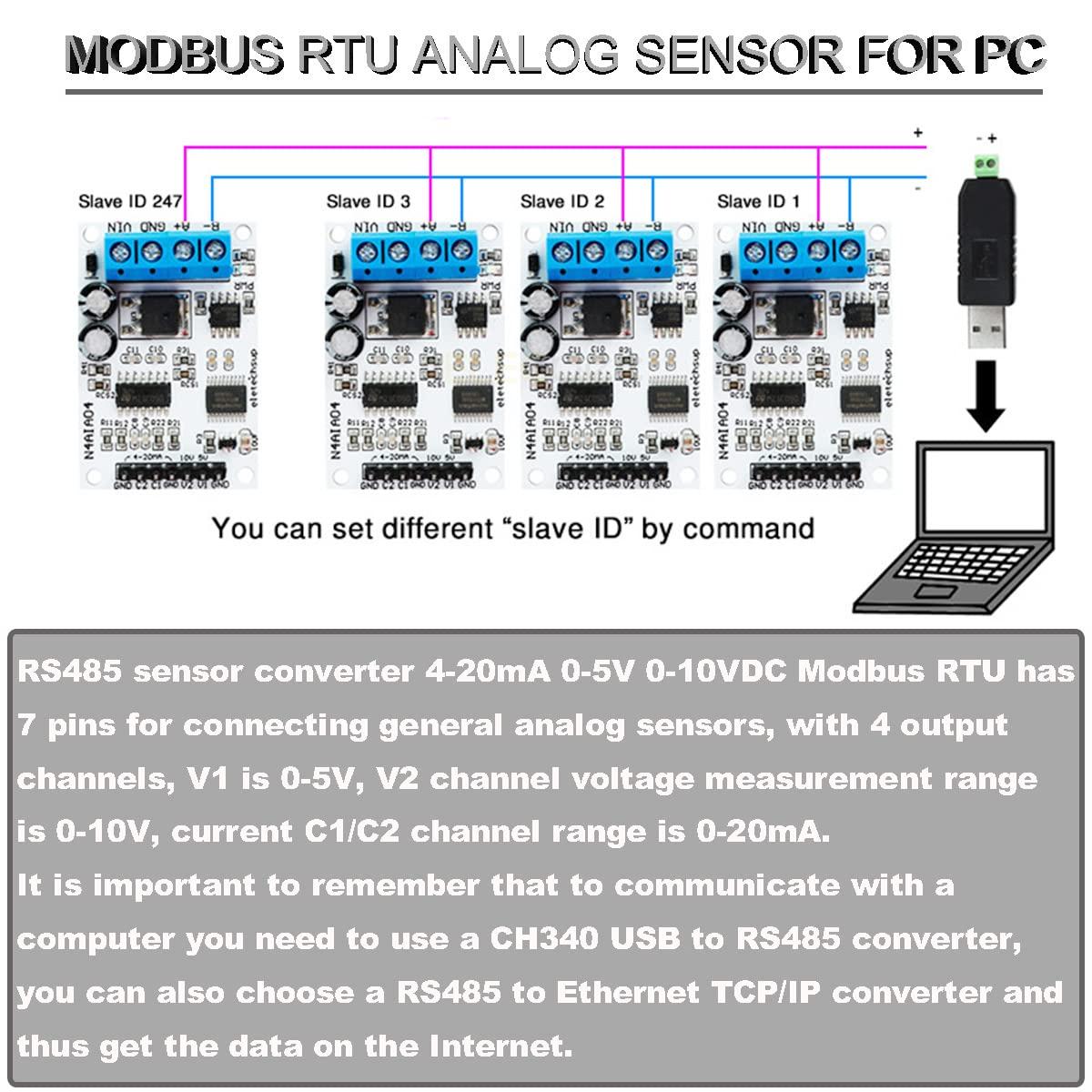 Elecbee DC 12V 4-20MA 0-5V 0-10V Spannungssignalerfassung RS485 MODBUS RTU-Modul für SPS-Stromtransport N4AIA04 Messeninstrumente DC 8-25V