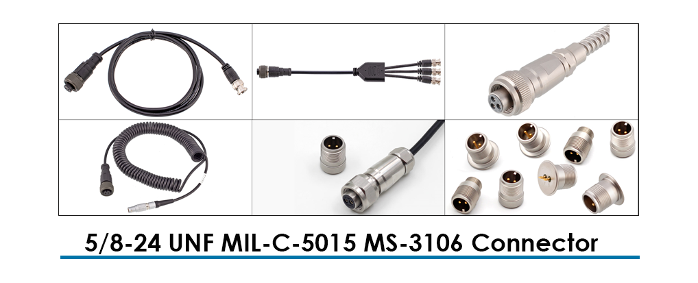 Außer dem 2-poligen Stecker können auch 3-polige und 4-polige MIL-C-5015-Stecker für Beschleunigungsmesserkabel verwendet werden.