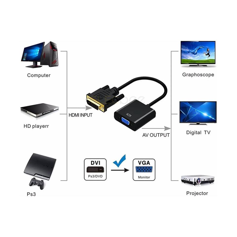 Mit diesem VGA-Adapter von DVI können Sie einen Standard-Analog-Monitor, ein Projektor oder einen LCD anschließen, der einen VGA-Anschluss oder ein Kabel mit einem Notebook, einer DVD, einem TV-Box, einem Blu-ray-Player, einem Computer, einem Projektor und einem idealen Büro, Home Entertainment-Display, Konferenzräumen und mehr ist.