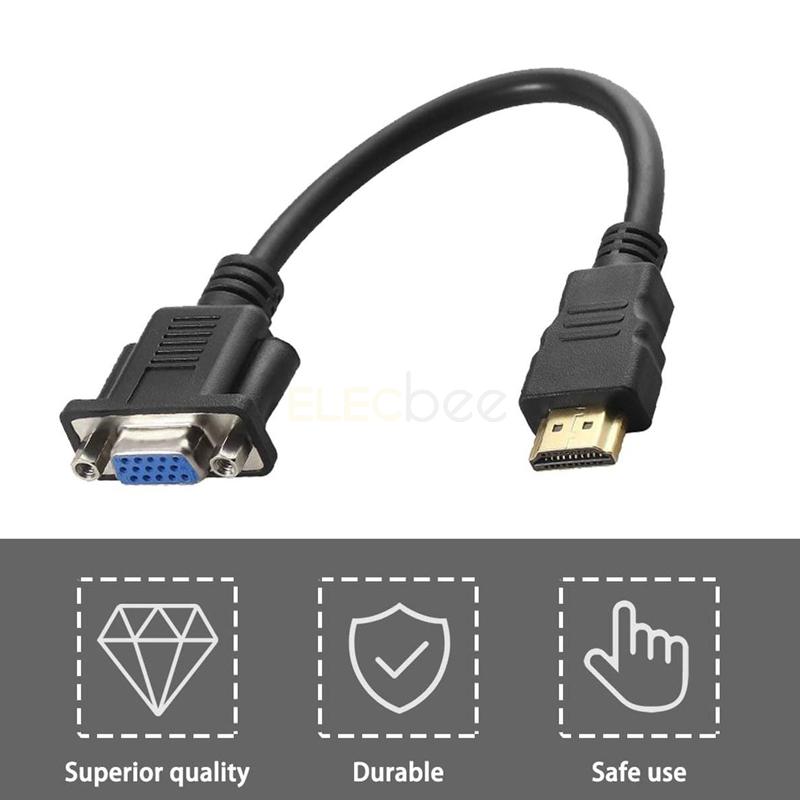 Elecbee HDMI-Stecker auf VGA D-Sub 15 Pins Buchse AV-Adapter-Konverterkabel für HDTV-Projektor-Set-Top-Box