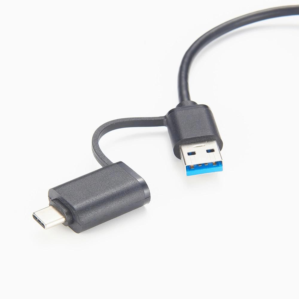 Ein USB A -bis C -Adapter übertragen den Port problemlos vom PC -Ende auf den Laptop, wodurch es für beide Anschlüsse funktioniert.