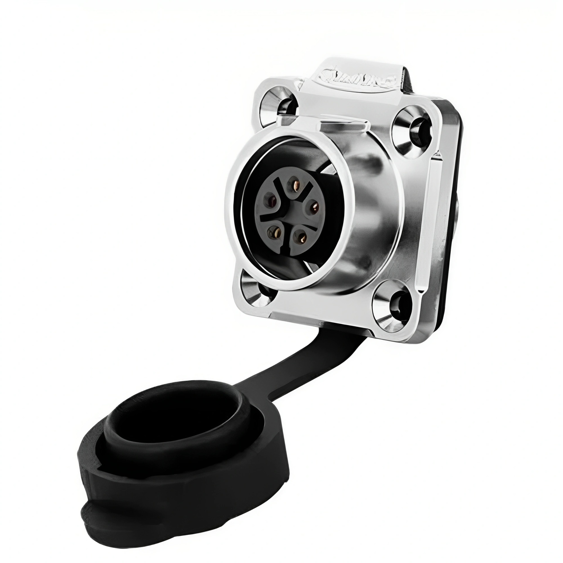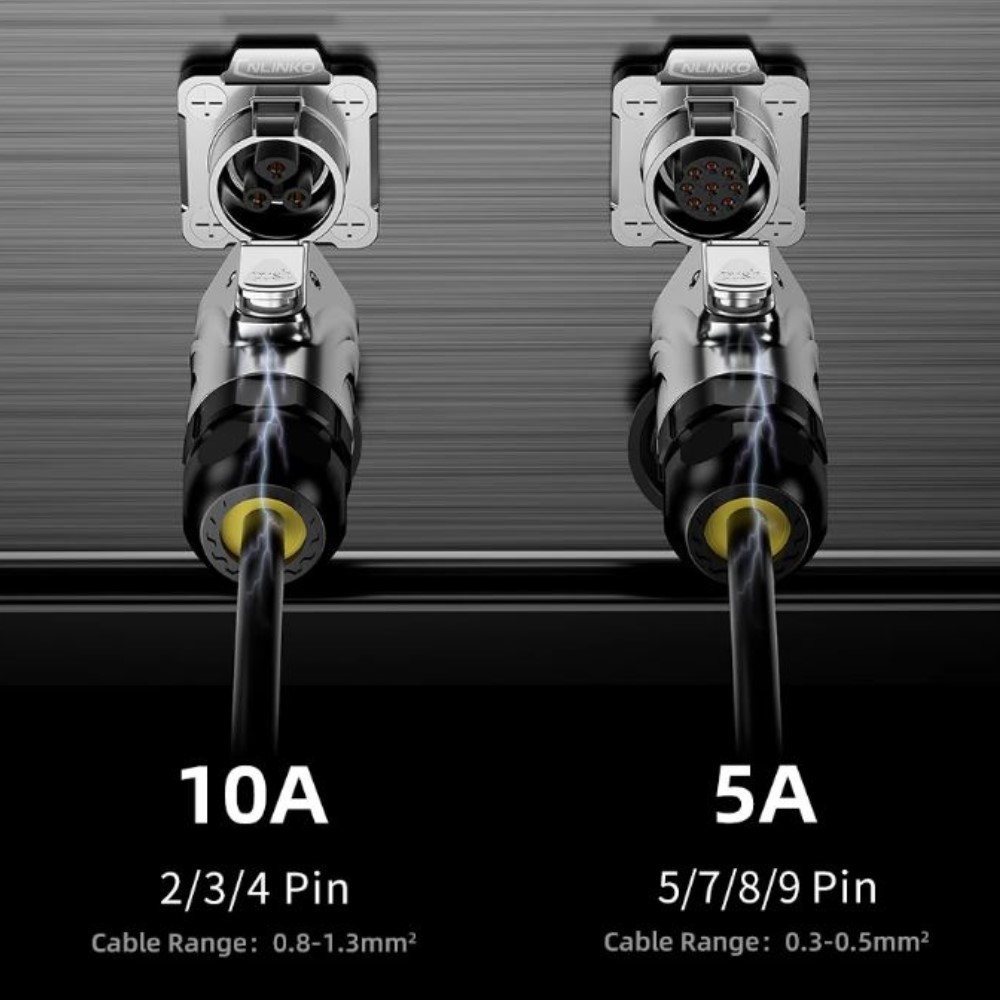 5-polige Strom- und Signalsteuerung: 5 vergoldete Buchsen (Ø 1,00 mm); 250 V/5 A für SPS/Motorsteuerungen.