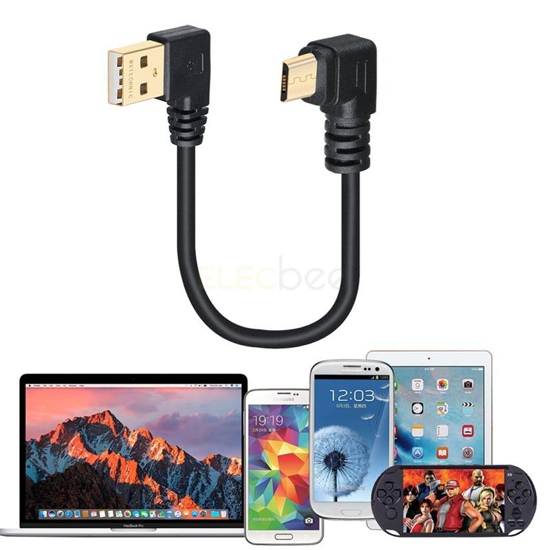 Elecbee Micro USB Data Cable - 90 Degree Left Angle USB 2.0 A Male to Micro B 5 Pin for Syncing Charging Smartphones, GPS, External Hard Drives (Black)