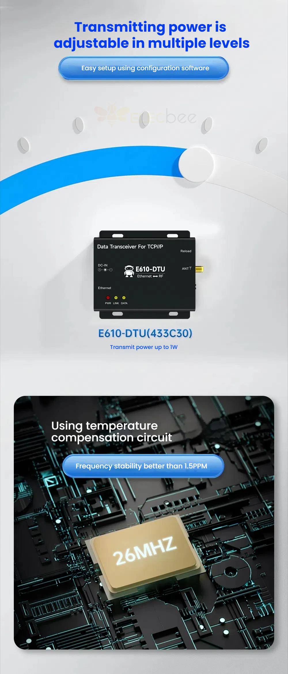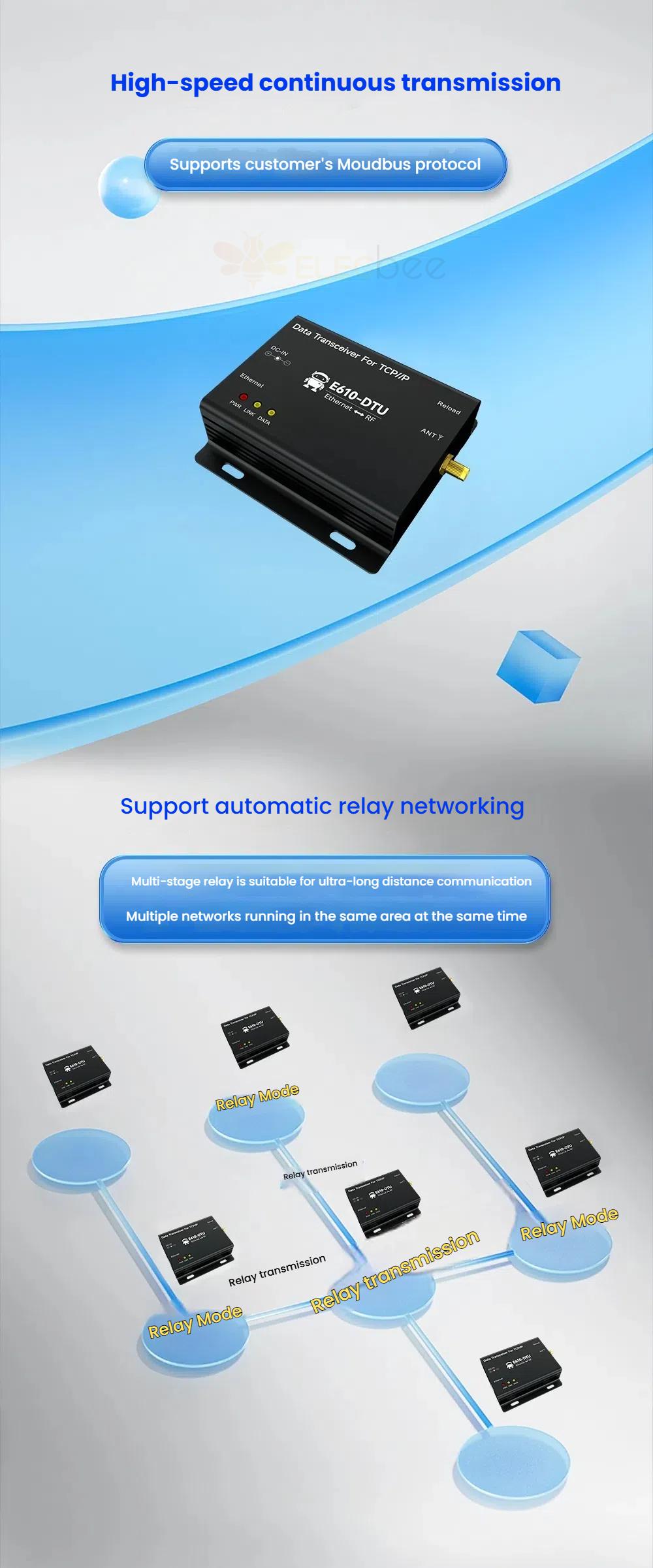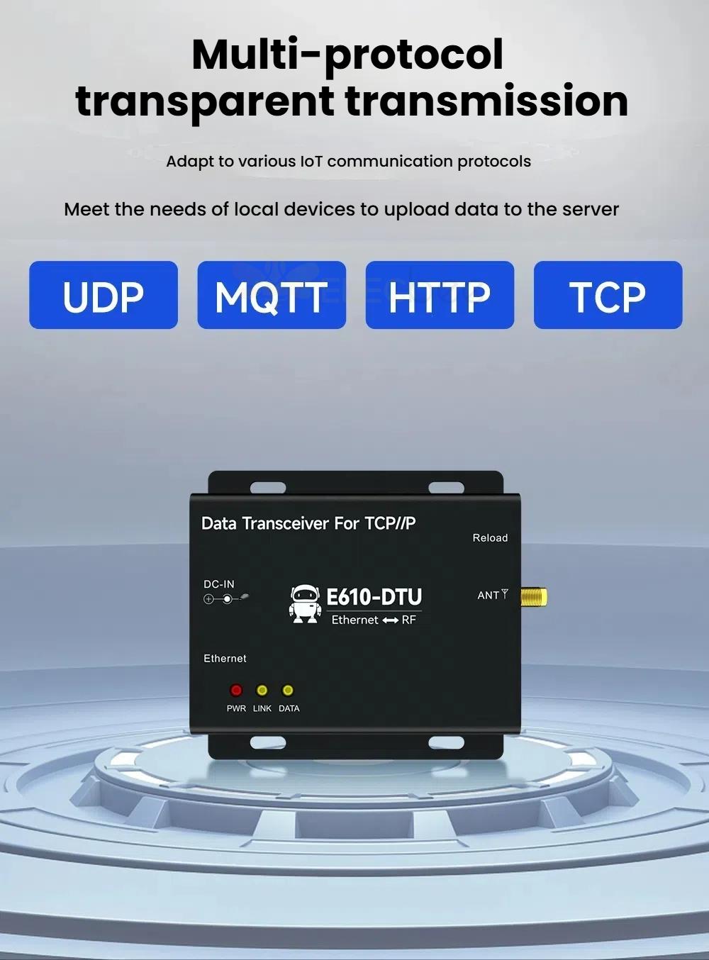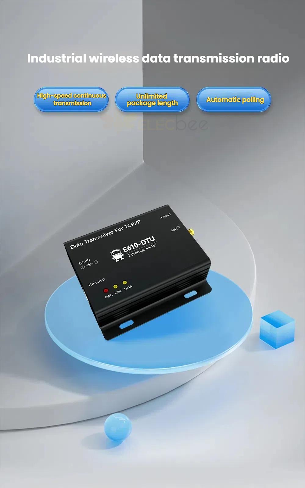 E610-DTU(433C30)E is an isolated wireless gateway (isolated interface data transmission radio) supporting 10M/100M rate developed based on wireless communication technology and isolation protocol.