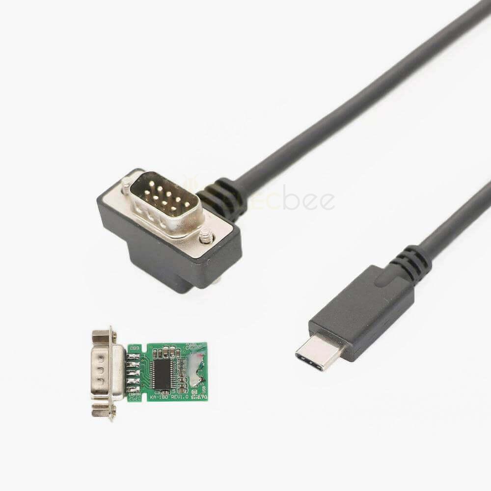 Elecbee USB C 2.0 MaleTo Right Angle Serial 9 Pin DB9 Male Rs232 Converter Cable 1m