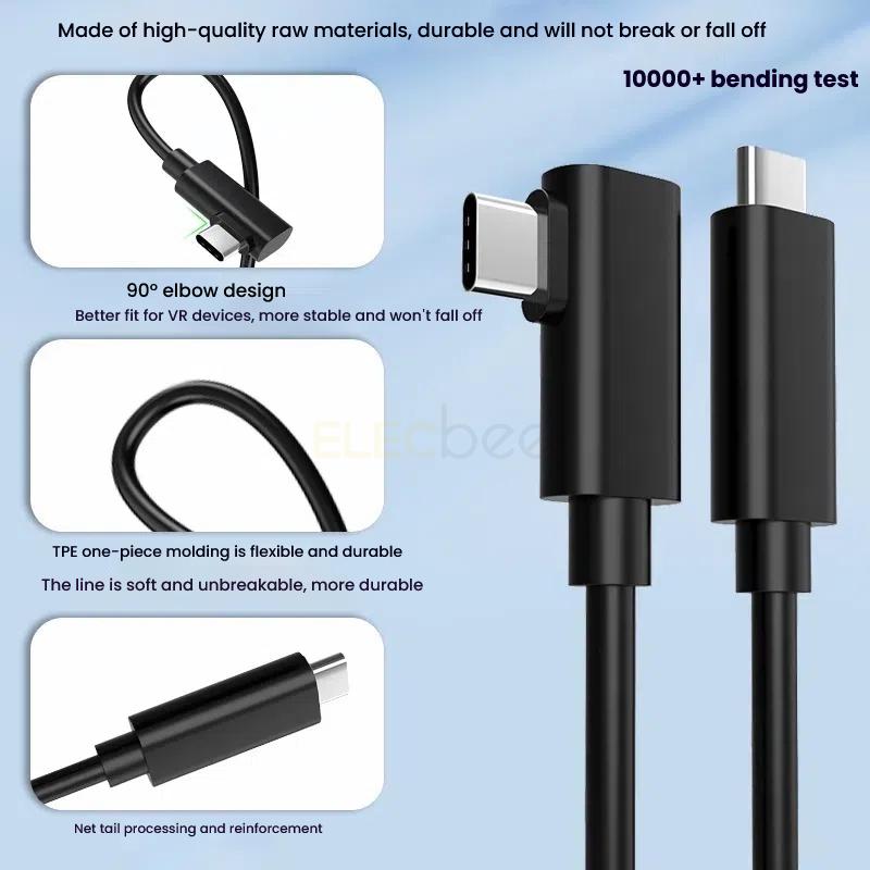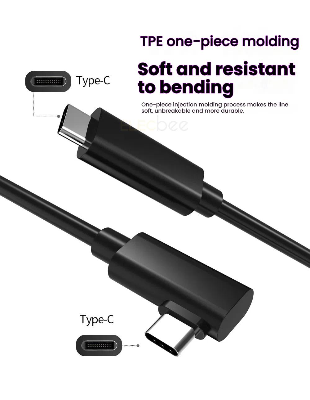 Elecbee Oculus Quest 2/Quest VR Link Cable - 90 Degree USB-C to C, 5Gbps 3A, 1M for VR Gaming C-Port Devices