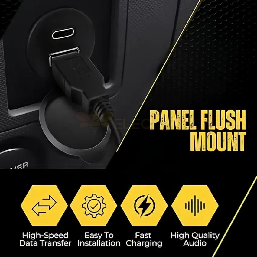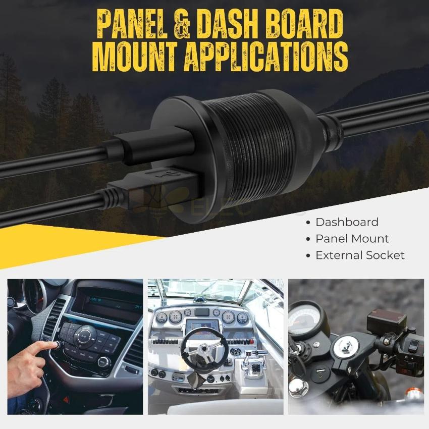 Flush-Mount Installation for Clean Dashboards - Fits seamlessly into your vehicle/boat/motorcycle dashboard, sitting flush with the surface to eliminate unsightly cable bulk and keep your interior looking sleek.