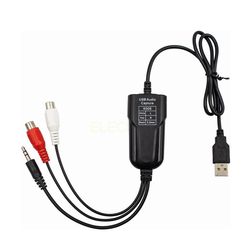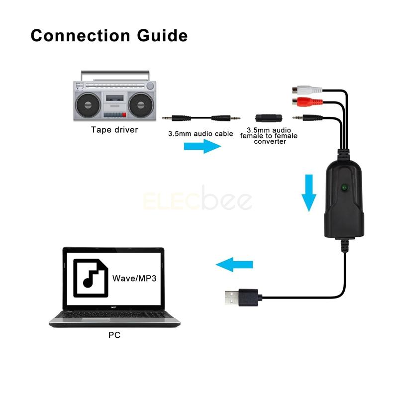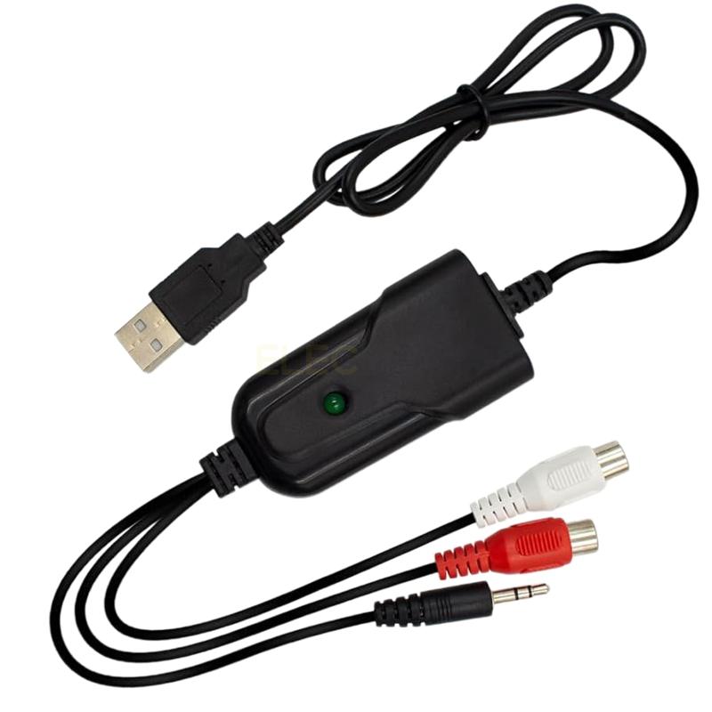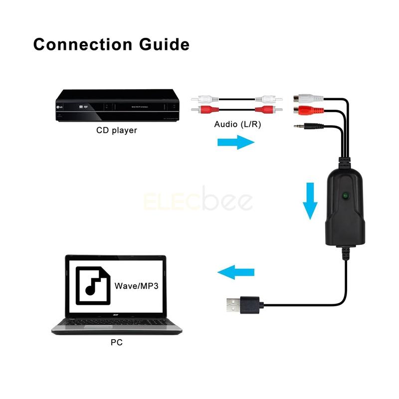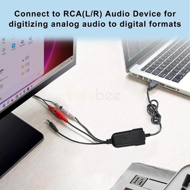 Elecbee USB2.0 Audio Capture Card RCA L/R+3.5mm Audio to USB, Wave/MP3 for Tape MD CD Player Phono Laptop