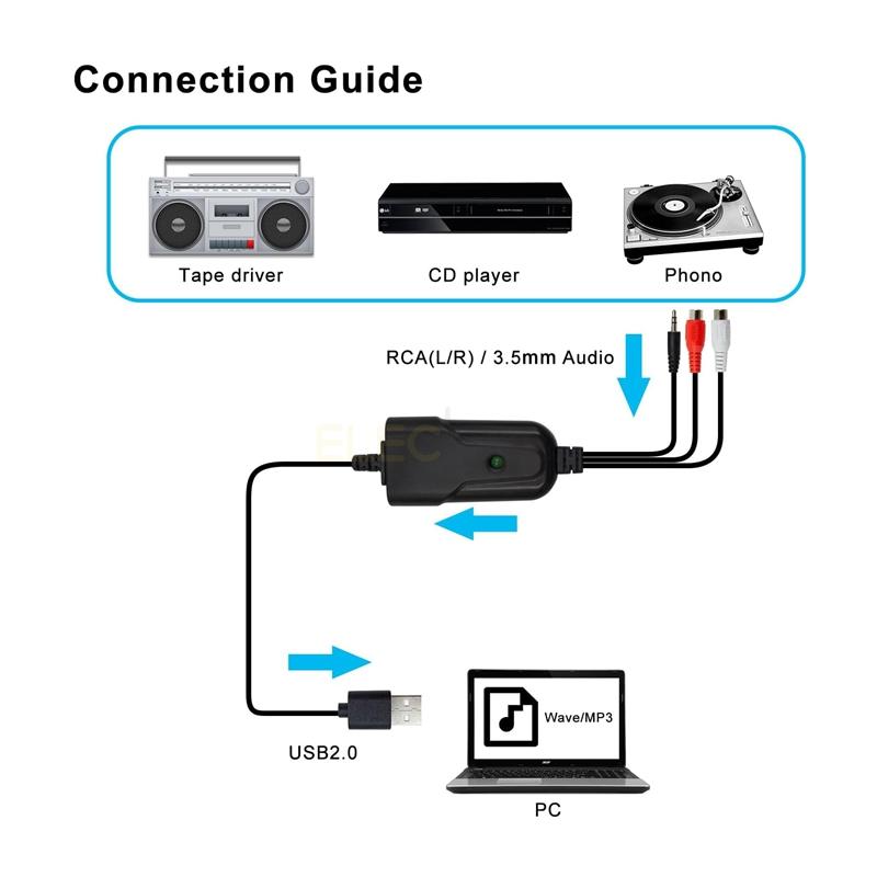 • Plug-and-Play: Easily connect the device to your computer via USB for hassle-free setup and operation. Wave/MP3 format for post-capture to meet the requirements of most players.