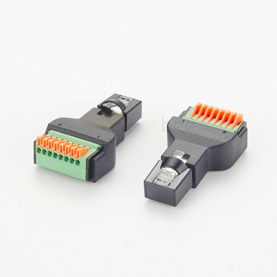 RJ45 Male to 8 Position Spring Type Terminal Block Adapter