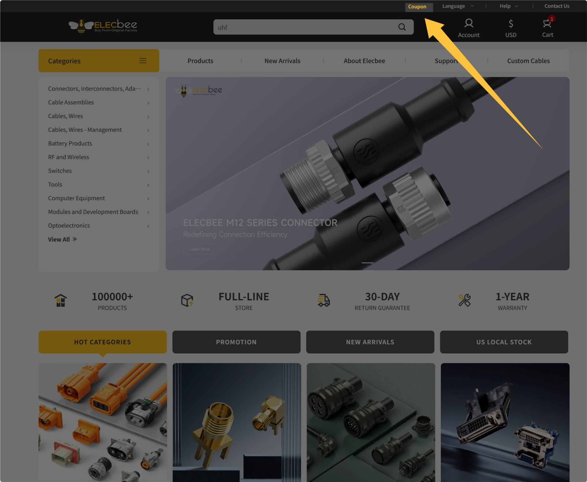 Step 1: Click the "Coupon" which is placed at the top of the homepage.