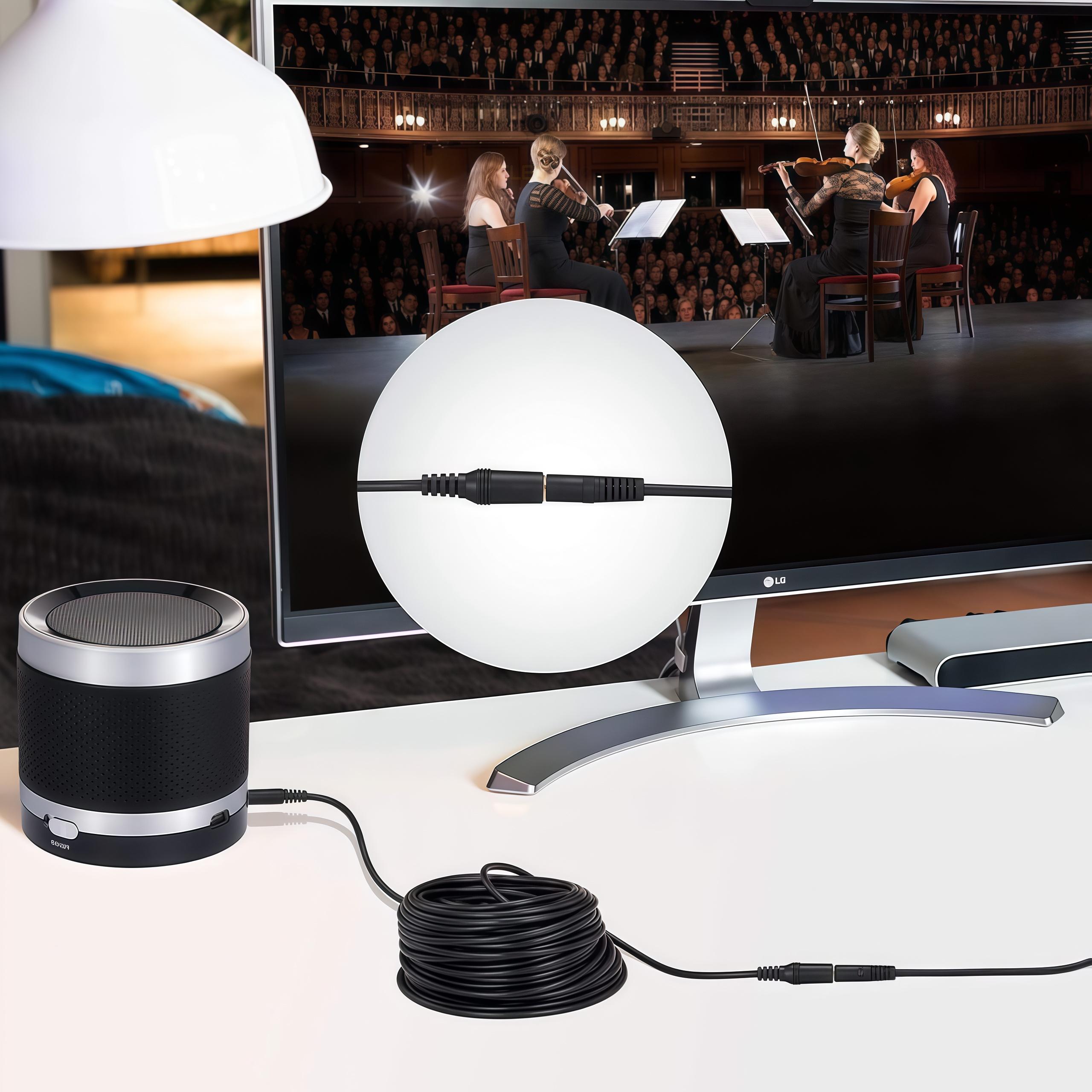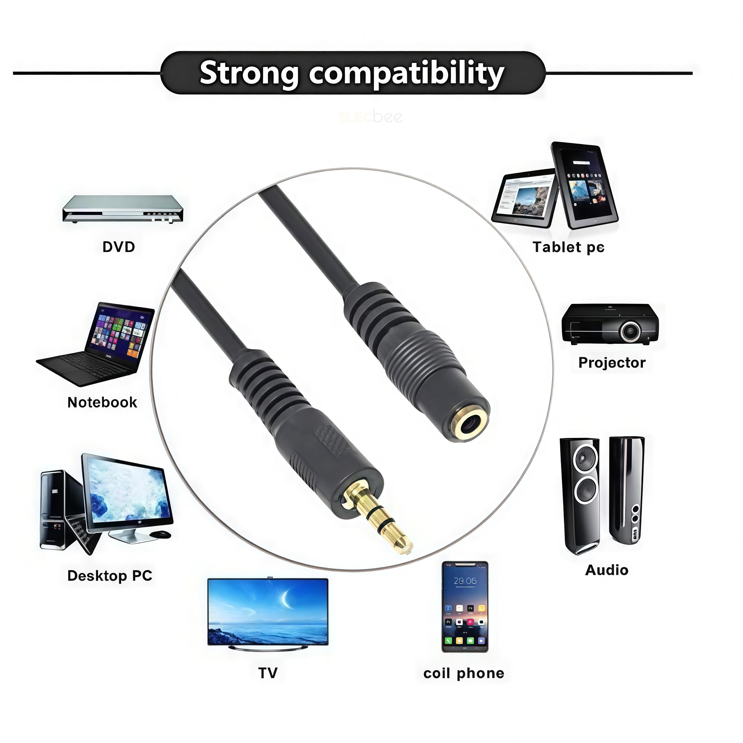 3.5mm audio extension cable extends the connection between your iPhone, iPod, MP3 player, DVD, smartphones, tablet, laptop, smart tv, echo dot or any other 3.5mm aux port equipped devices to your headphone, earphone, amplifier, speaker, car stereo or home theater system etc, making music play without location and time limitations.