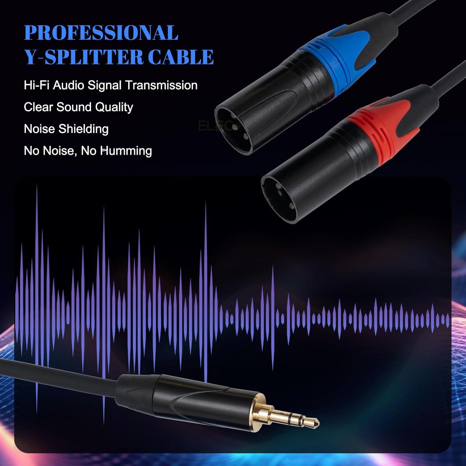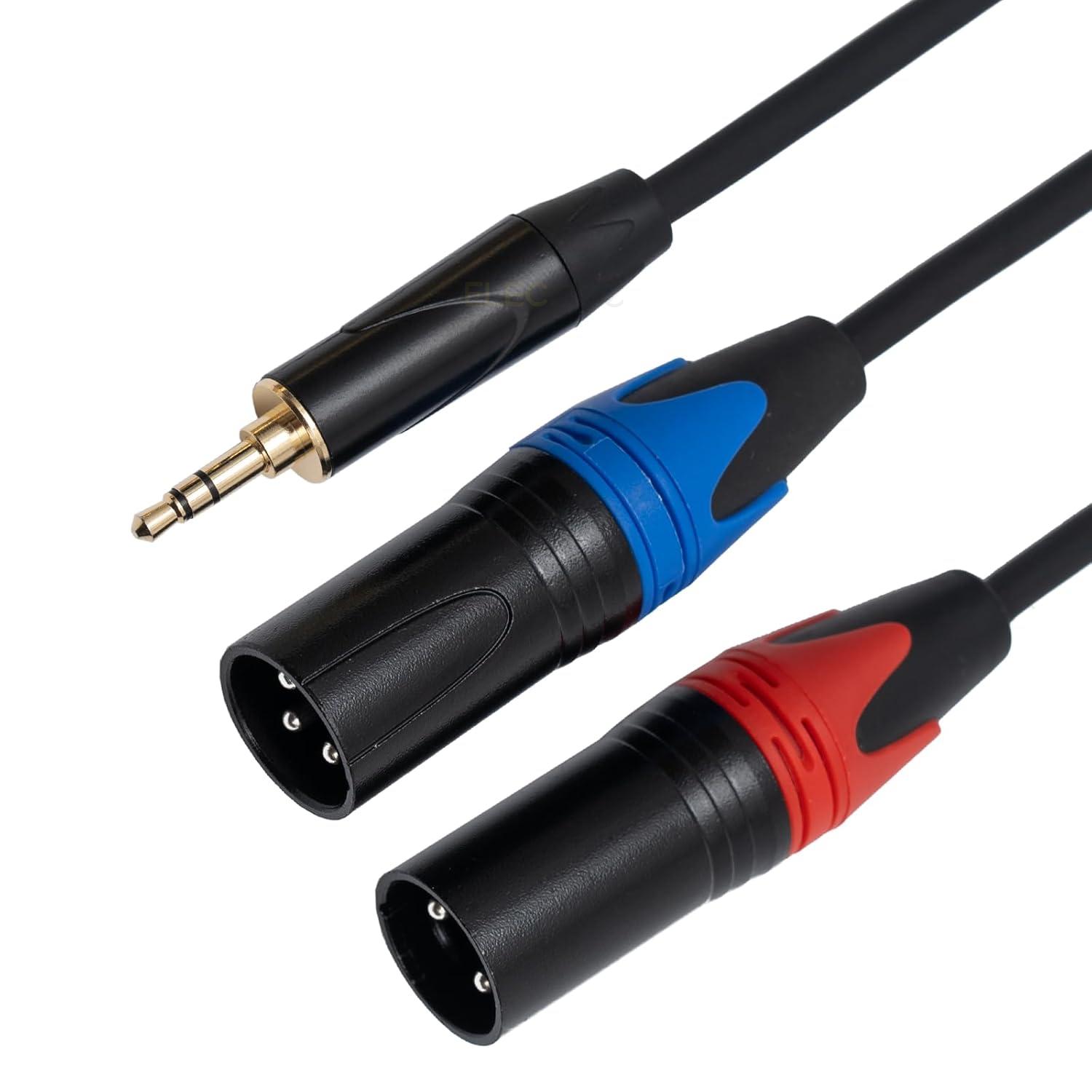 • Easy Connection: The step-down design of the 3.5mm connector provides connection to recessed ports;The XLR connectors are color coded blue(Left Channel) and Red(Right Channel), It splits closer to the XLR ends. The red connector is for the right channel and the blue connector is for the left channel.
