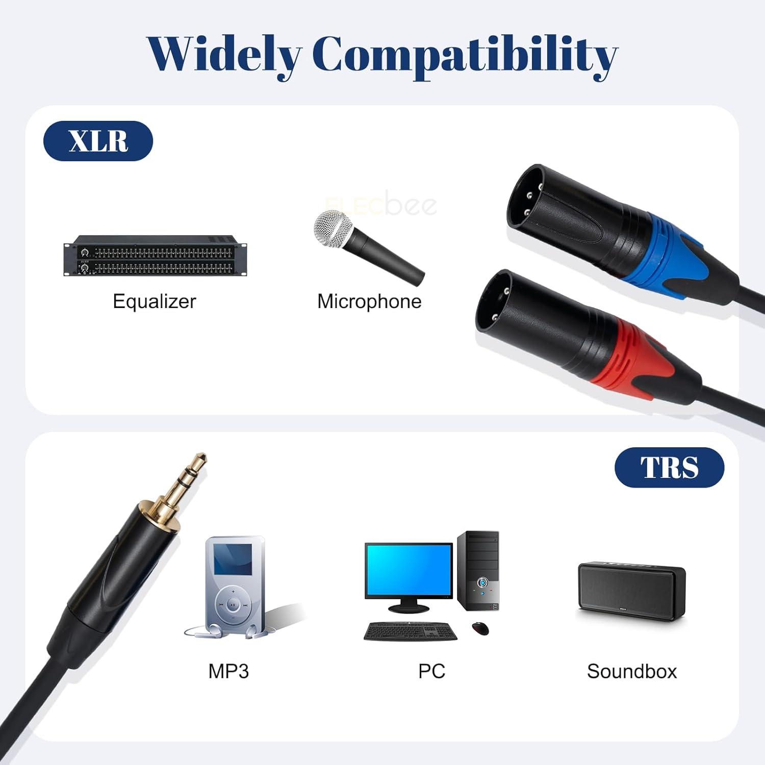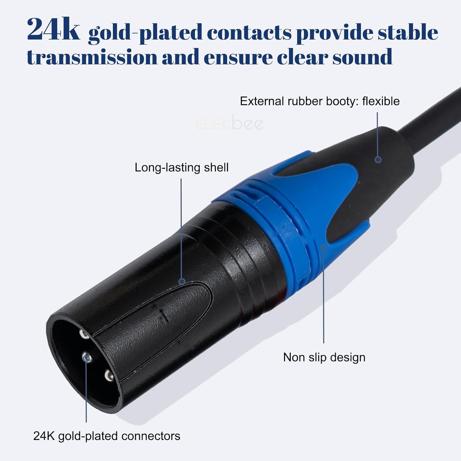 • Professional Quality:24k Gold-Plated Connectors for resist corrosion and offer a clear, smooth-flowing optimal signal, ensures minimum signal loss transfer; The 3.5mm to dual XLR cable has 360 degree easy-grip treads for frequent unplugging and durability.