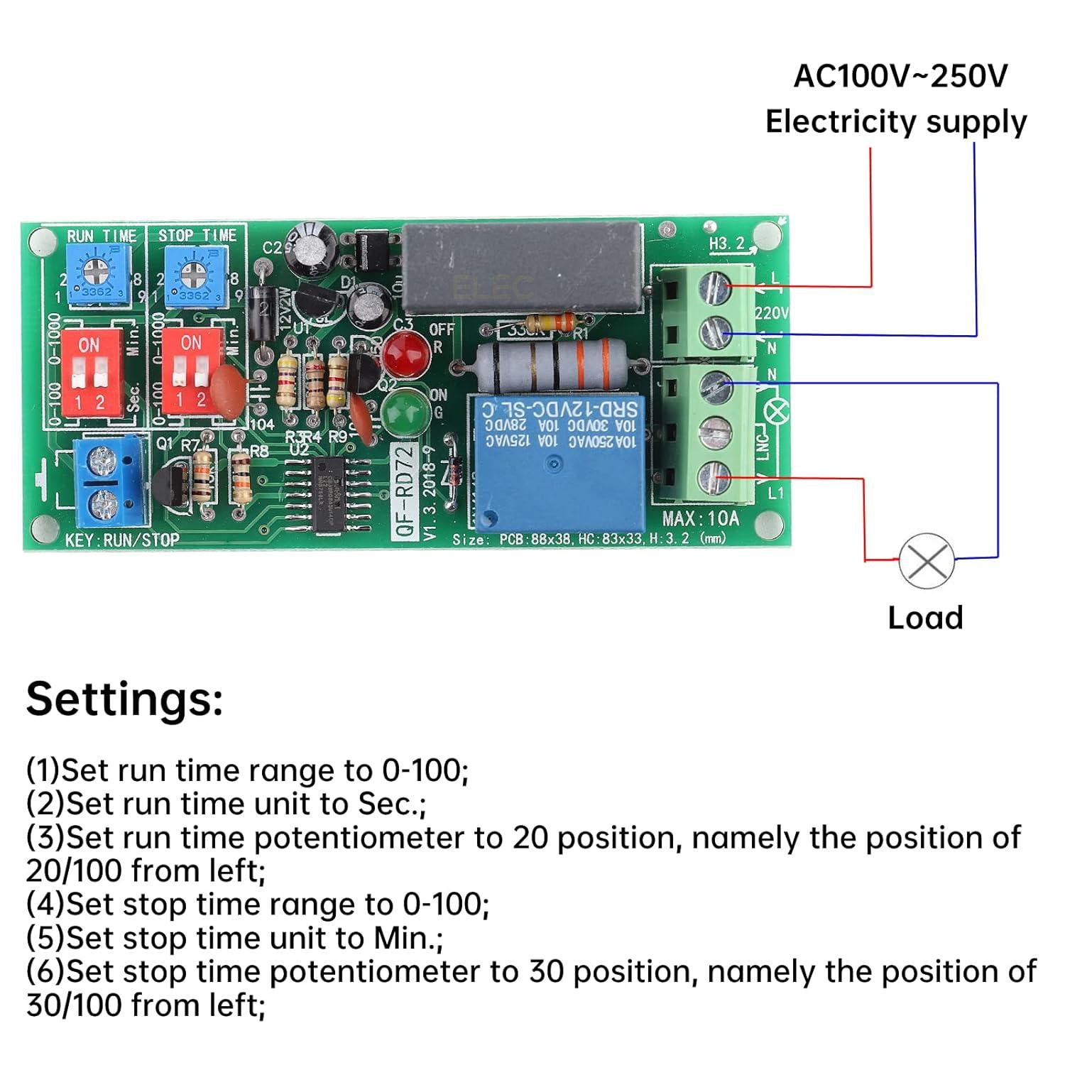 Elecbee AC100V~250V Infinite Cycle Delay Timer Timing Switch Relay Turn On Off Module 0.5s ~ 1000min Adjustable Time Delay Switch QFRD-72