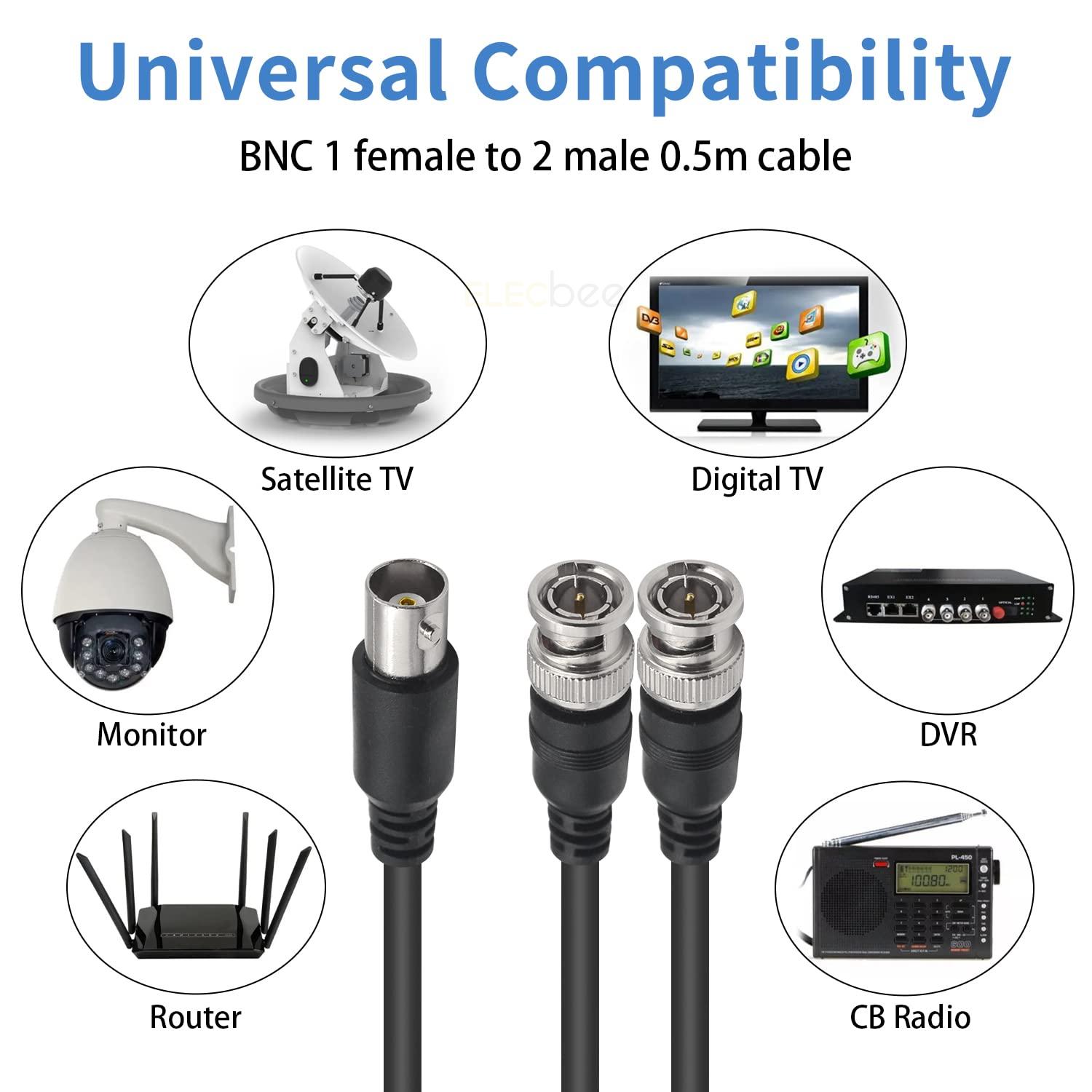 BNC Cable works with CCTV system, security camera, antenna, scanner, radio, audio system, video equipment.
