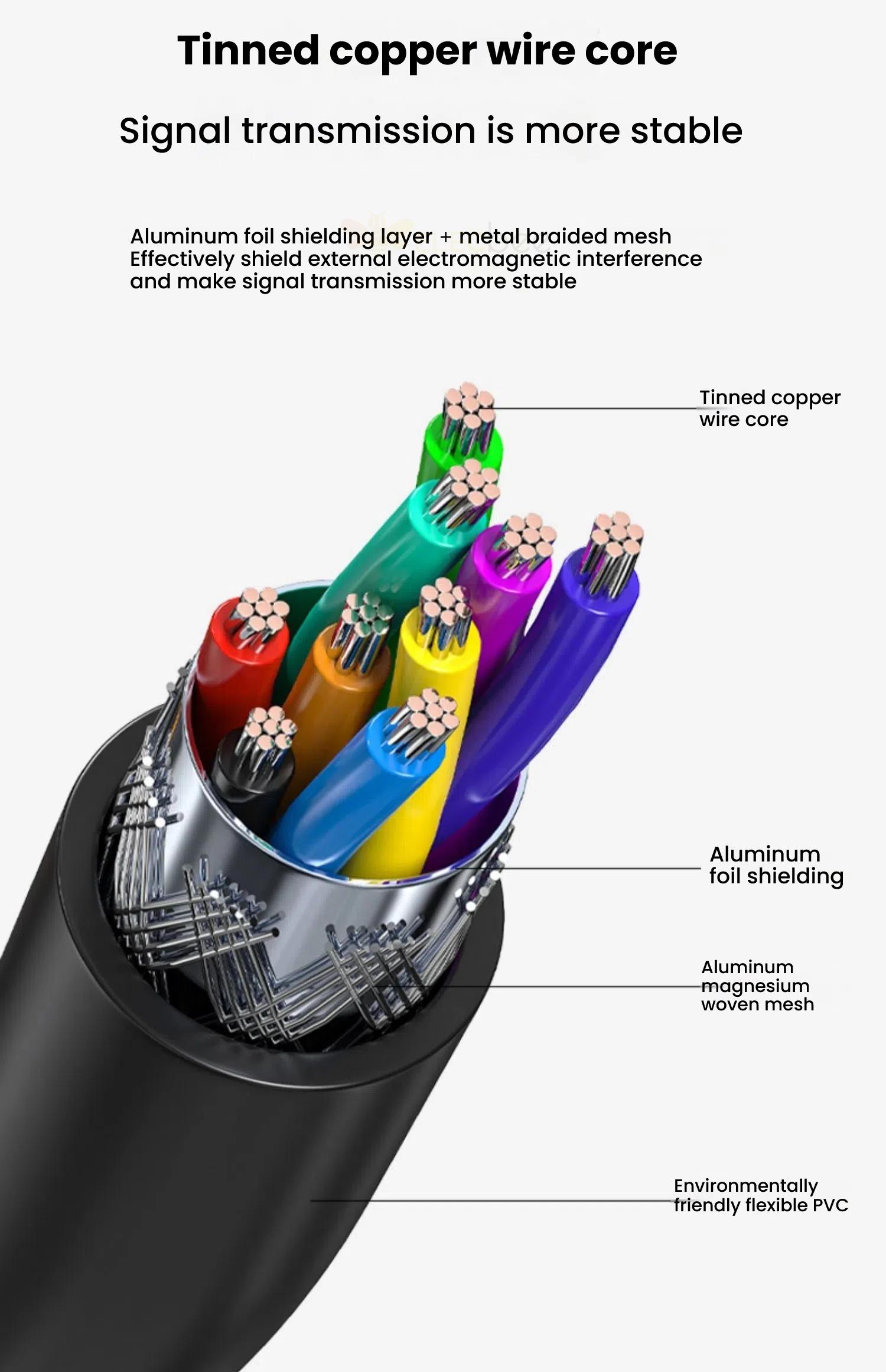 Shield: high-density braided mesh + aluminum foil shielding layer